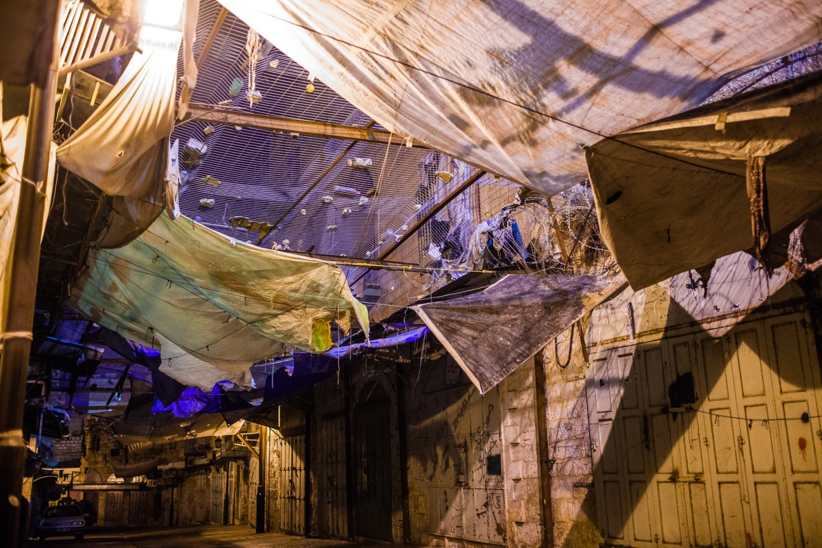 hebron-16 December 12, 2013 by Abhaya Metal grids installed in the Old City to prevent garbage dropped by Israeli settlers falling into a Palestinian area. Hebron, 2013.