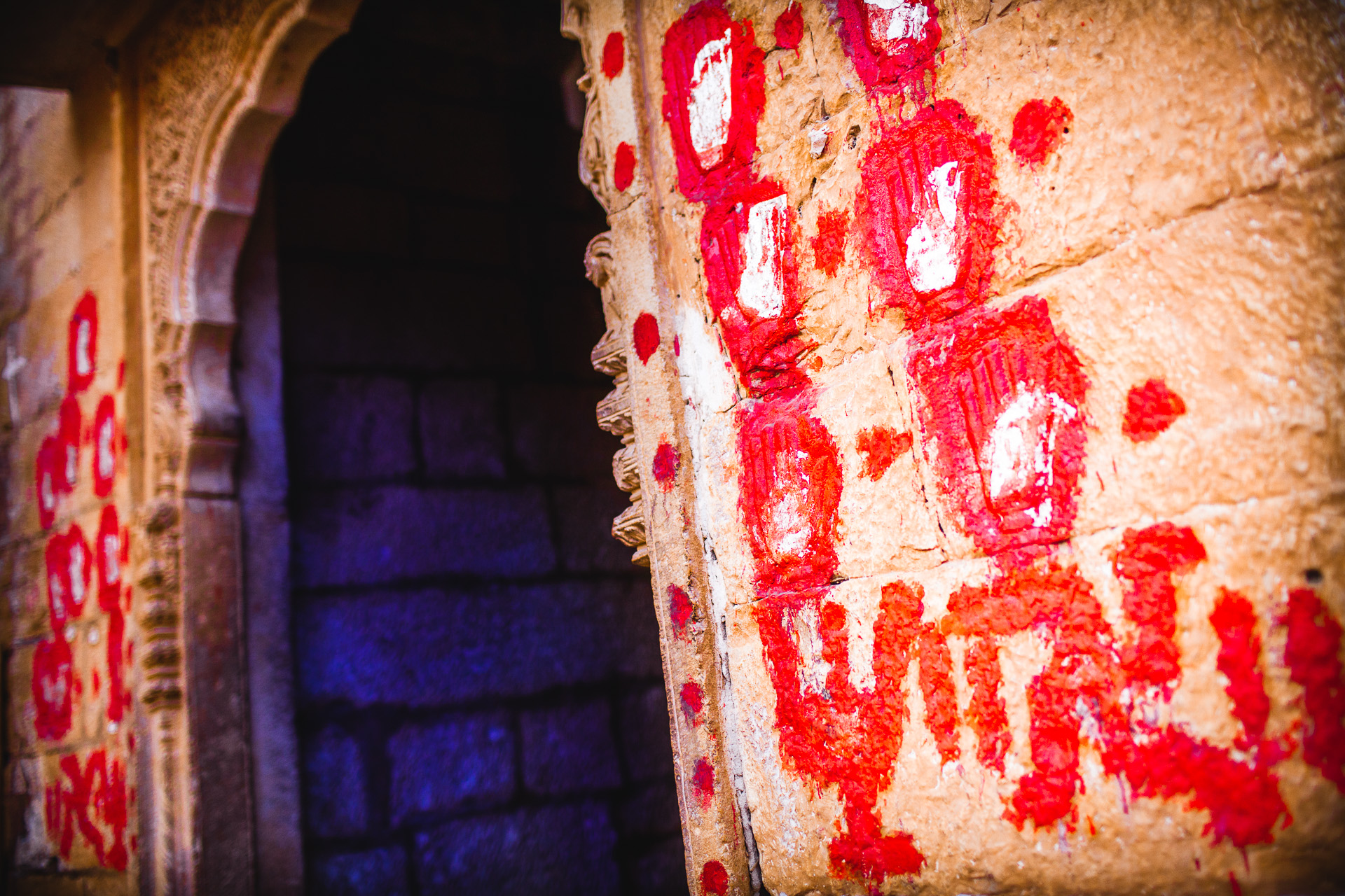 The entrance of the Fort Palace is still showing some red painted hand prints. It was the last trace a woman would leave behind her before entering the Harem. She would never go out or leave the place for the rest of her life.