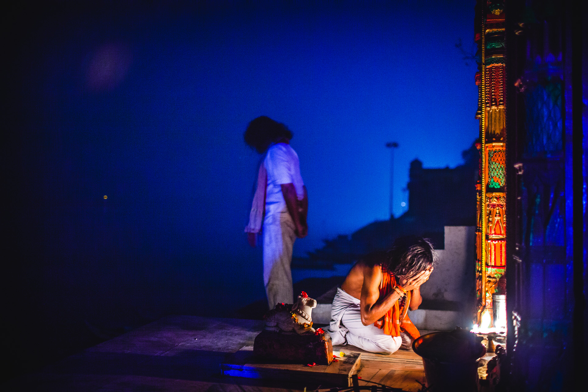 Ghat at night. Varanasi, Uttar Pradesh, India, 2014.